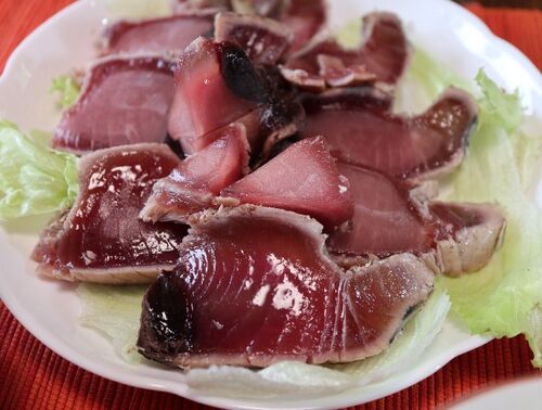 朝から、食べます〜 昨晩の残り物、鶏たたきに、鰹のたたきを追加 休日の豪華な朝ごはん・・・ こいつも、鹿児島から 血合いが付いてるんですが~ 前回は少しにおったけど今回のは、臭みも無くとっても美味しいんです〜 残りの鶏もも 大きいので、どうしても…