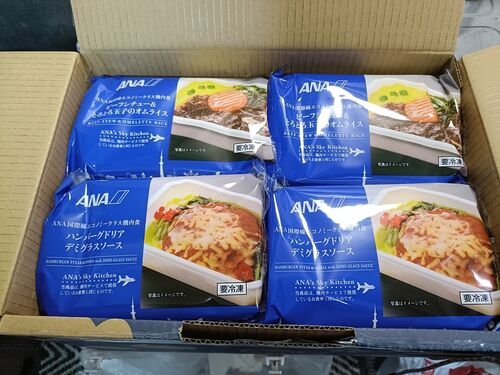 ANAのマイルが期限切れになる前に使わなきゃってことで お正月の非常食用にANAの機内食買ってみた。 ANA国際線エコノミークラス機内食福袋セットなる商品で6種類X2個セット「ビーフシチュー&とろとろ玉子のオムライス」「ビーフハンバーグステーキ」「ハ…